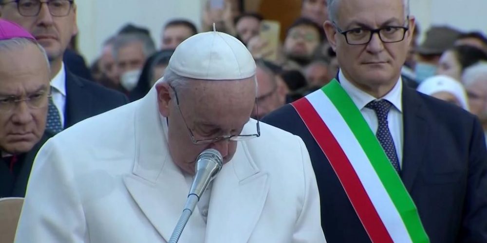 „Сеќавањето на овој страшен настан нека побуди кај сите намери и акции за постигнување мир“, рече Папата на одбележувањето на годишнината од тој настан, па, отстапувајќи од напишаниот текст, додаде: „И така се повторува историјата. Денес гледаме што се случува во Украина“.