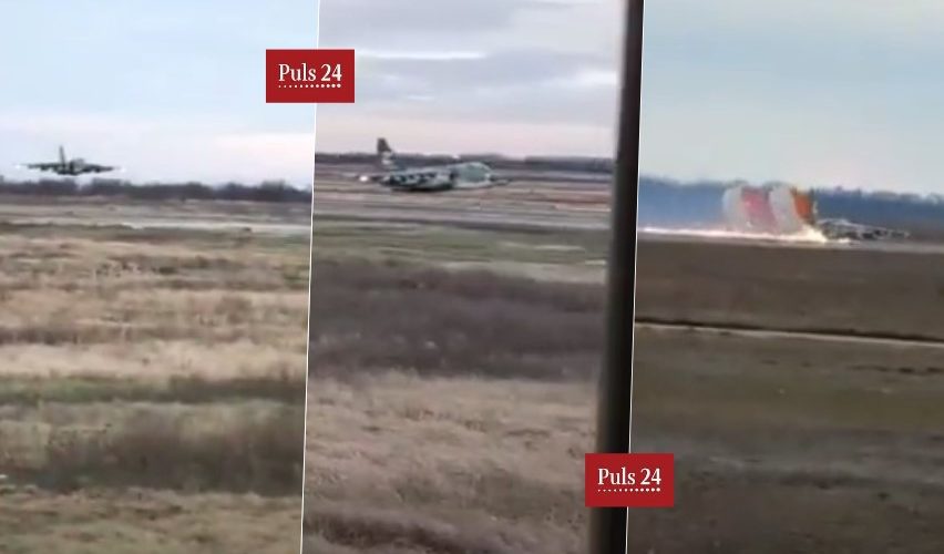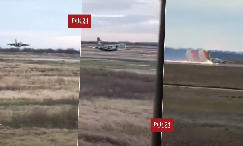 На социјалните мрежи беше објавено видео на кое се гледа принудното слетување на авион за кој се тврди дека е СУ-25 на руските воздухопловни сили.