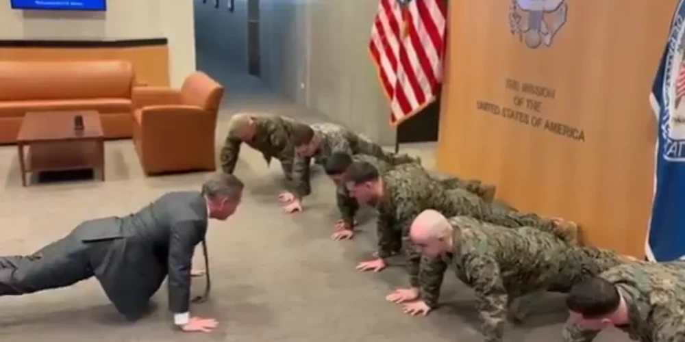 Американскиот амбасадор во ОН, Мајк Валц, објави видео на социјалните мрежи на кое прави склекови заедно со американските војници во Женева.