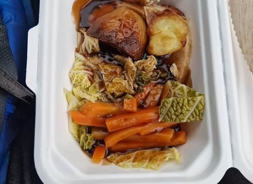 43-годишната Лин Пенгели го фотографирала бесплатниот училишен оброк што му бил обезбеден на синот Џош во основното училиште Милбрук во Њупорт. На фотографијата се гледа скромно јадење од зелка, компири и моркови со малку сос.