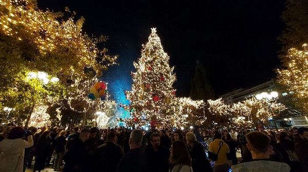 Од почетокот на месецов, централниот плоштад Синтагма во Атина е украсен со 21 -метарска елка со стотици лампиони и над 40.000 светилки во должина од пет километри.