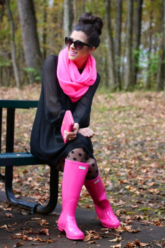 Бидејќи гумените чизми стануваат се попопуларни, се повеќе се произведуваат во интересни модели, бои и дизајни, па розовата боја не изостанува ниту оваа сезона. Розе совршено се вклопува со речиси сите други бои, и ако сакате да експериментирате, облечете жолта јакна и сончајте се во дождлив ден.