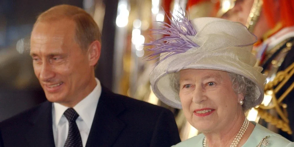 Како што може да се види, сега починатата кралица ги пречека Путин и „госпоѓица Бутина во Лондон“.