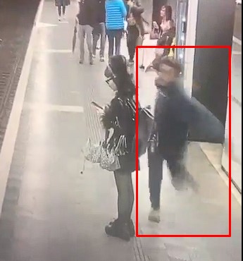 На видеото се гледа како маж оди на платформата и малтретира жени. А потоа како трча кон девојка, која гледала во нејзиниот телефон и не видела како насилно доаѓа кон неа. Ударот бил толку силен што самиот напаѓач изгубил рамнотежа и паднал на земја.