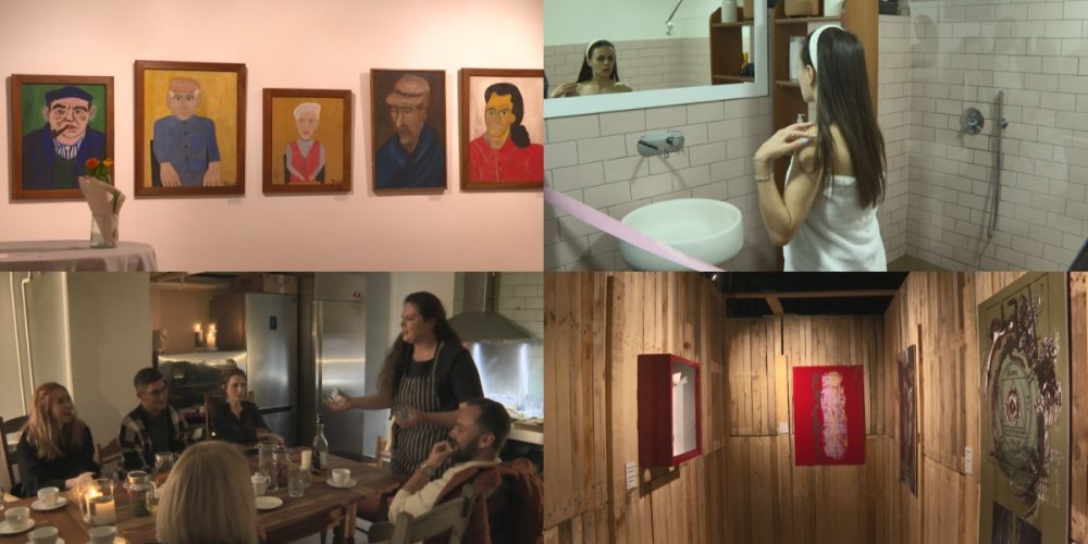 Прошетката низ куќата завршува во поголема просторија каде се изложени дела на врвни уметници, но и десетина ликовни креации на пациенти во Психијатриската болница во Демир Хисар