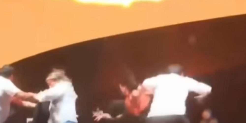 На социјалните мрежи се појавија снимки на кои се гледа моментот како на сцената има неколку луѓе, а Мајнез ги поздравува поддржувачите и кога бината се урива тој бега на безбедно.