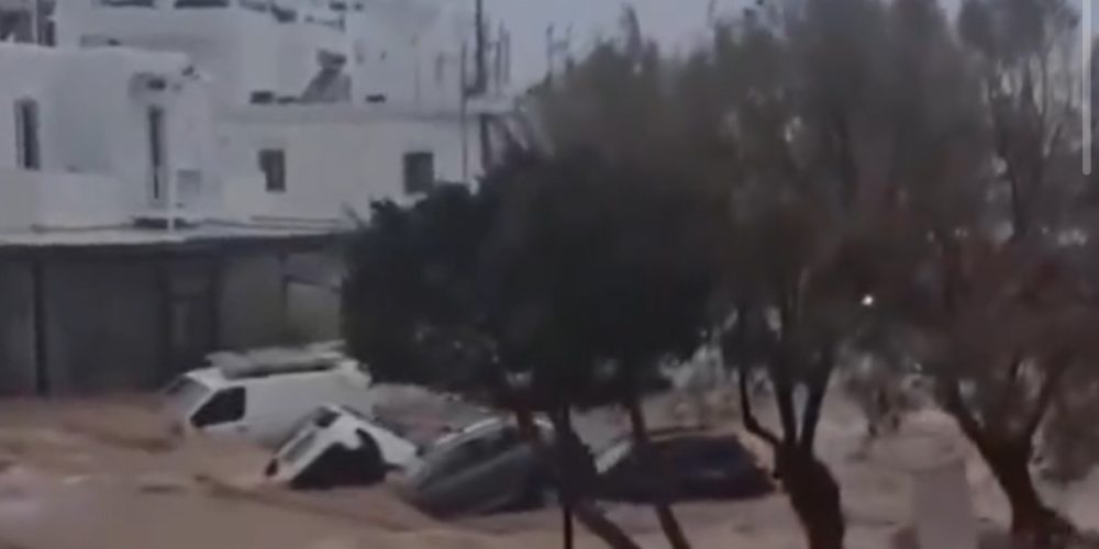 Големо невреме со пороен дожд попладнево ги зафати Кикладите, острови во Егејското Море, а најпогодени се Парос и Миконос, каде улиците се претворија во реки, а локалните власти го забранија сообраќајот на сите возила, пишува „“.