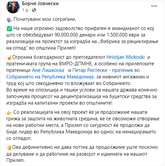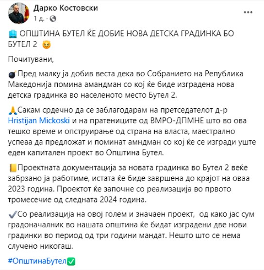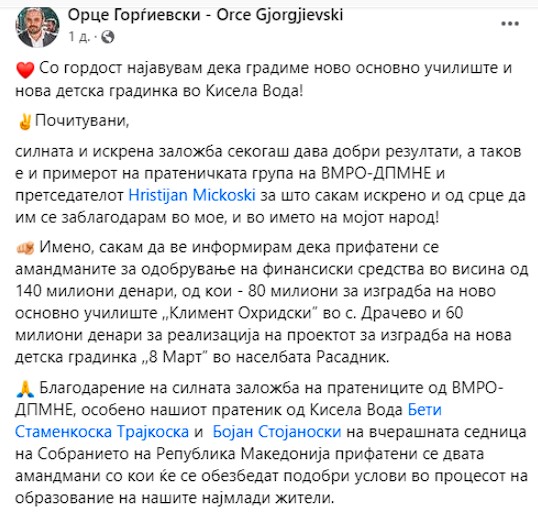 Во текот на вчерашниот ден на Фејсбук се појавија низа “хвалоспеви” за лидерот Мицкоски и неговата “маестрална” борба во Собранието за донесување на Буџетот на Република Македонија, со кој Буџет, практично, Владата ќе им ги реализира проектите на градоначалниците на ВМРО-ДПМНЕ.