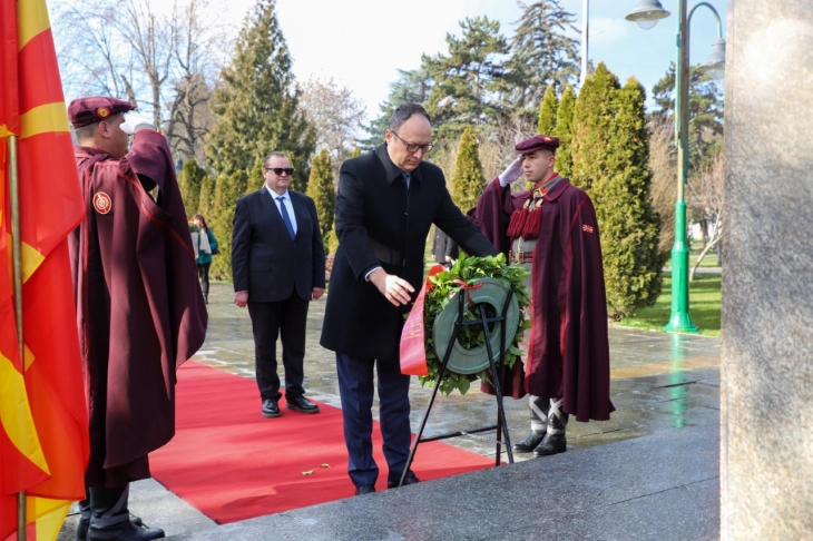 Владина делегација положи цвеќе пред споменикот на Гоце Делчев во градскиот парк во Скопје