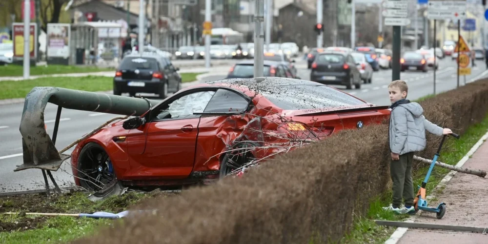 Како што можете да видите на фотографиите, еден автомобил излетал од патот, удрил во столб и завршил на зелената површина.