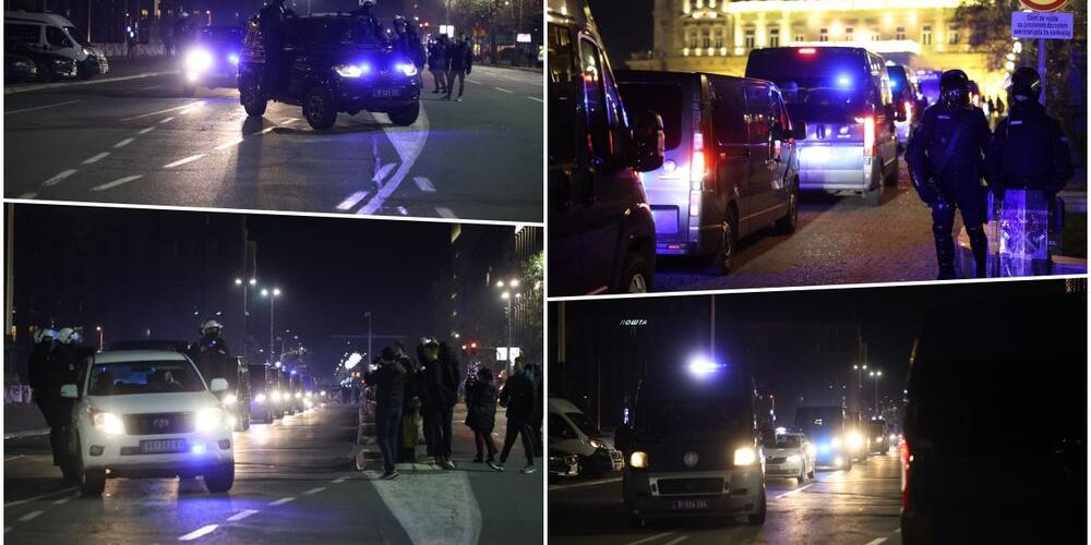Група демонстранти вечерва се обиделе насилно да влезат во градското собрание на Белград. Тие го скршиле стаклото на вратата, но биле спречени од полициски сили на влезот во зградата.