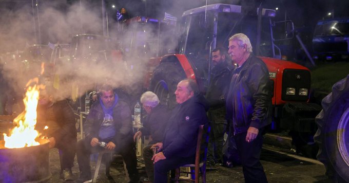 Грчките земјоделци од северниот дел на земјата, вечерва го блокираа преминот Евзони (Богородица) кон Македонија за влез на товарни возила.