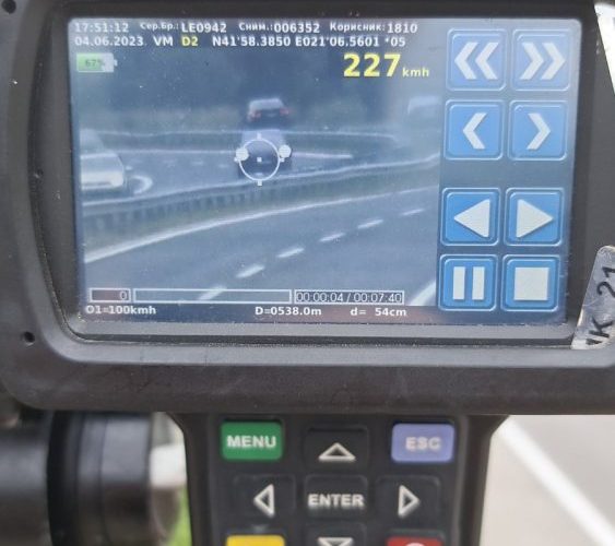 Сообраќајните полицајци вчера на автопатот Тетово-Скопје меѓу 94 возачи кои ги казниле за пребрзо возење, откриле двајца кои се движеле со 214 и 227 километри на час. Акциската контрола за брзина со која се движат возилата, посебно на автопатот Гостивар-Тетово-Скопје била спроведена од 15 до 21 часот на тетовско-гостиварското подрачје.