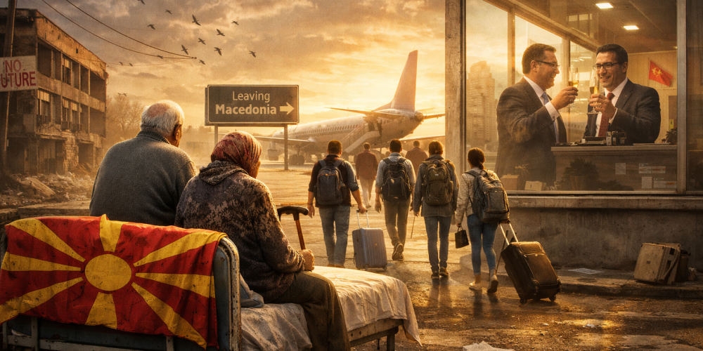 Станавме главен и одговорен дистрибутер на човечки капитал. Место во кое победуваат „книшките“ пред знаењето, а и не дека остана голем дел од интелектуалната фела за конкуренција. Нередовните примања, малите плати, високите цени за домови, неправичноста, распаднатото здравство, партиските вработувања, се само дел од причините заради кои државата ни останува без млади. Се соочуваме со сериозни параметри кои ни покажуваат дека оваа држава оди во пропаст, а ние како да стоиме со скрстени раце и чекаме кога ќе дојде крајот.