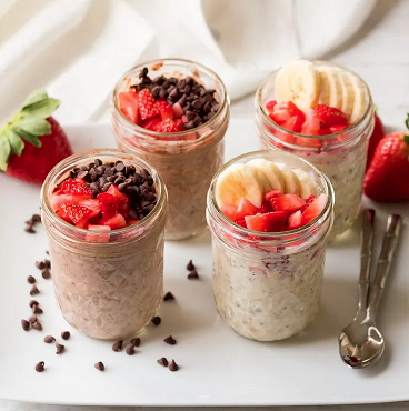 Јагодите или другото овошје по желба пресечете ги на коцки и распоредете ги во чаши. Овесната каша измешајте ја со една лажица мед и сок од јагоди.