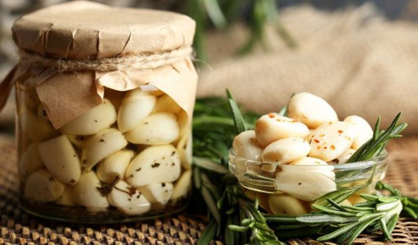 Во претходно стерилизирана тегла, наредете ги чешнињата лук и прелијте ги со оцетот додека е сè уште топол.