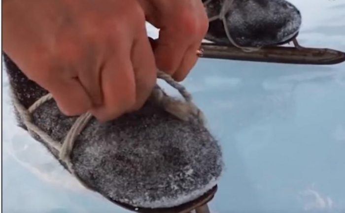 До некои места во зима може да стигне само по мраз, па цел живот лизга. Старинските лизгалки ги врзува за традиционалните чизми ваљенки.