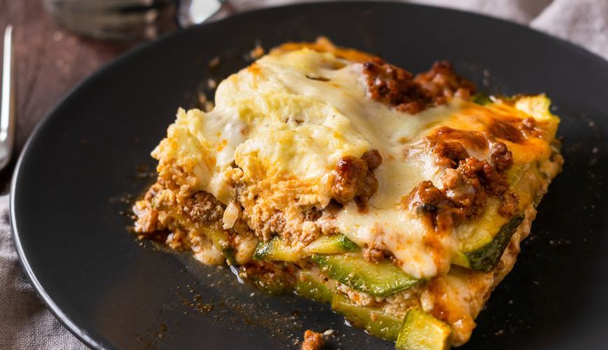 Извадете ги листовите, дното на садот за печење прекријте го со мешавина со мелено место и прекријте со два листа лазањи повторете ја постапката со мелено место. На крајот, прелијте со белиот сос и наросете рендан пармезан.
