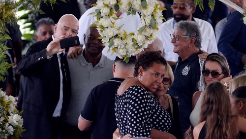 Претседателот на ФИФА, Џани Инфантино, е фотографиран како прави селфи покрај отворениот ковчег на Пеле.