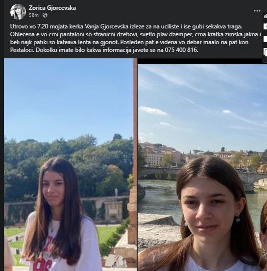 На фејсбук се одвива солидарно споделување на сите страни. Ако имате некакви информации јавете на Зорица