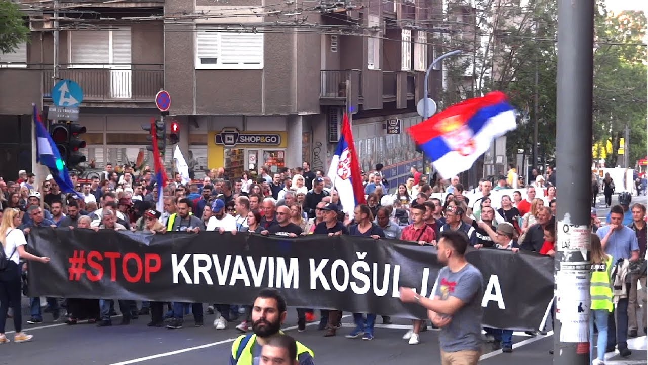 Потоа насобраните белграѓани тргнаа на марш по рутата од Терезије , преку зградата на РТС до зградата на Претседателството на Србија. На чело на колоната имаше транспарент “Стоп на крвавите кошули”, но претставниците на опозицијата не беа во првите редови.