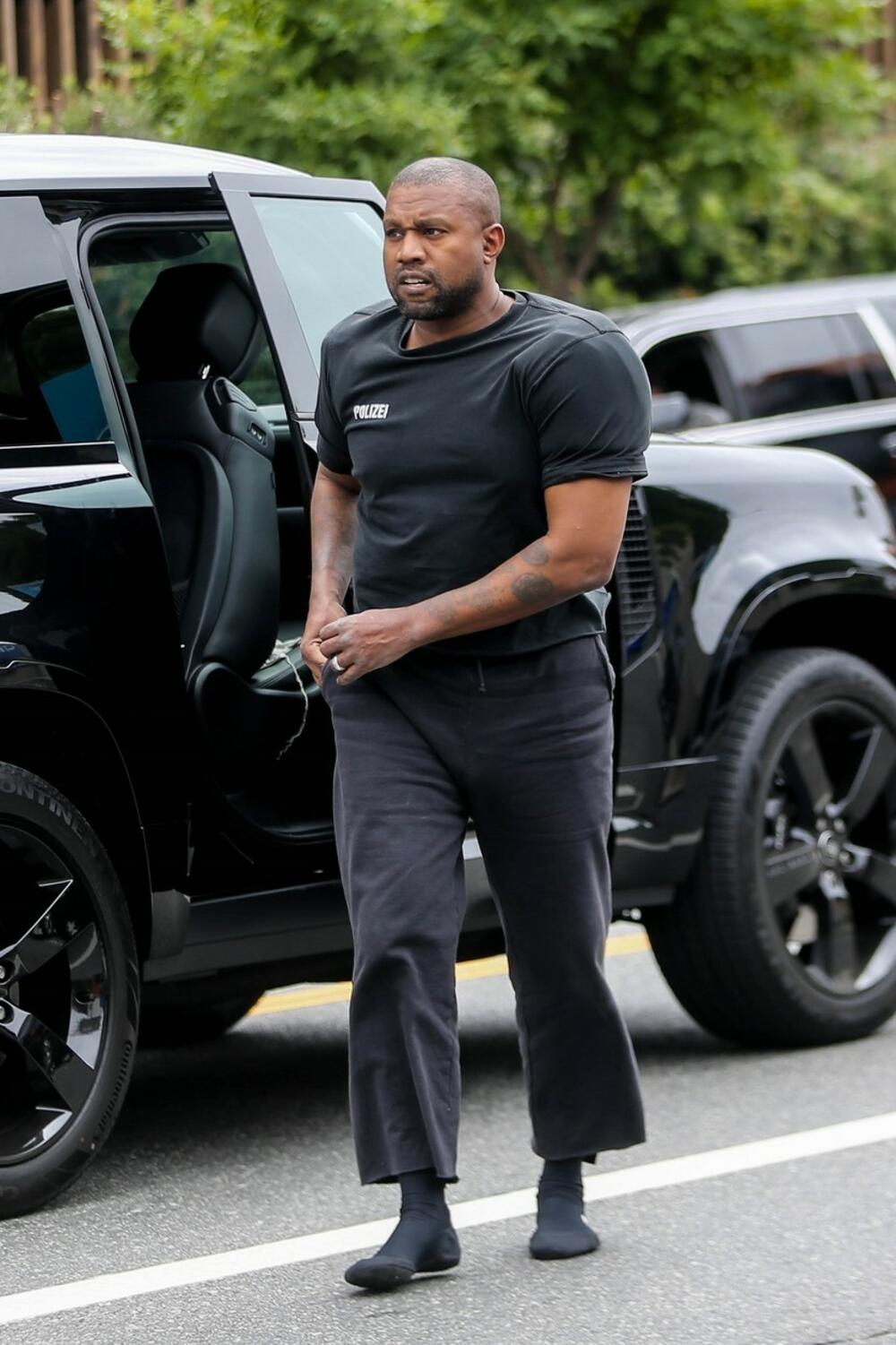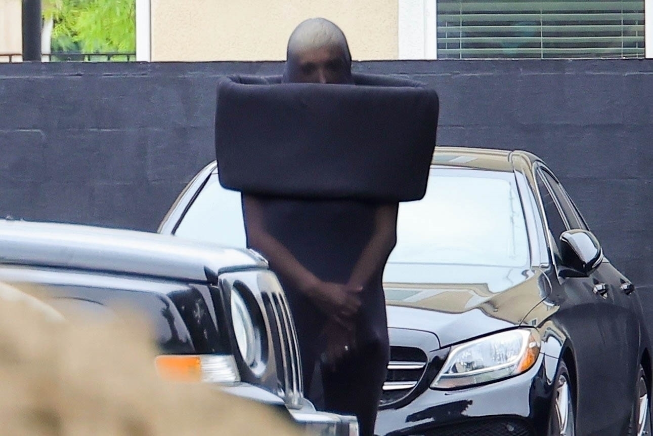 46-годишниот Канје и 28-годишната Бјанка биле фотографирани при доаѓање во една црква во Лос Анџелес, а она што ги привлекло сите погледи биле нивните бизарни аутфити.