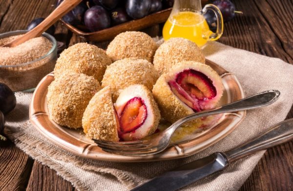 Земете малку тесто и обликувајте топче околу сливата. Оставете го кнедлото на страна.