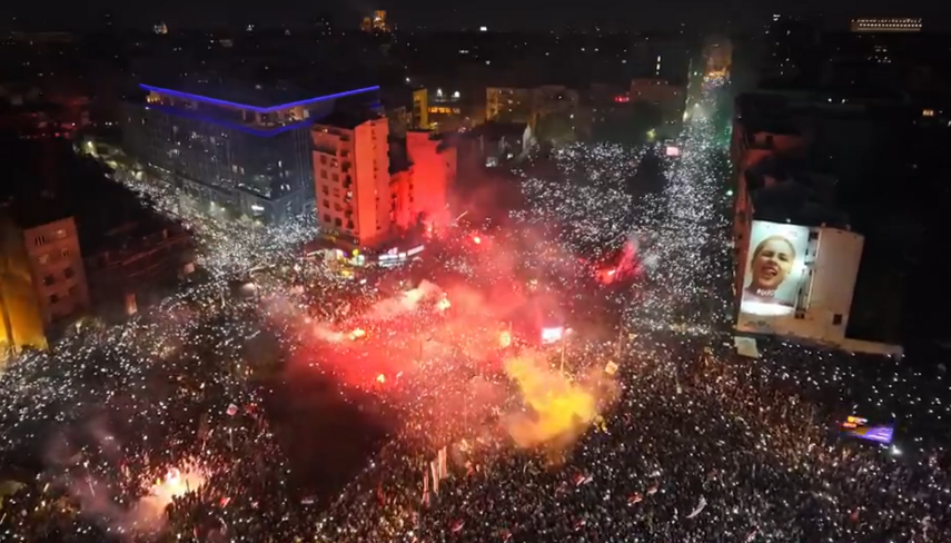 „Во моментов сум на протестот и можам да ви кажам дека Теразија, плоштадот Никола Пашиќ, улицата Крал Милан и плоштадот Славија се преполни… Како некој што учествуваше на 5-ти октомври, морам да кажам дека овде има повеќе луѓе и според мое верување, на протестот има повеќе од 500.000 луѓе. Не можам да проценам, затоа што е едноставно неразбирливо. Само што го поминав Зелени Венец, кој исто така е полн, а луѓето доаѓаат преку мостовите“, рече Прелевиќ.