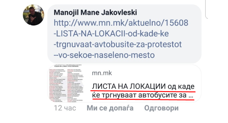 Ние не се сомневаме во чесните намери на 95 проценти на учесниците во протестите. Тие навистина доаѓаат со намера да го одбраната името на Македонија. Но, како и сега, така и цела година наназад една врхушка која е поврзана со Мицковски и други моќници се труди да го држи под контрола бесот на народот и со тоа тргува со странците. Како на пример Мицковски кога му вети на Хан дека ќе биде конструктивен во врска со ГРЧКИОТ ДОГОВОР.
