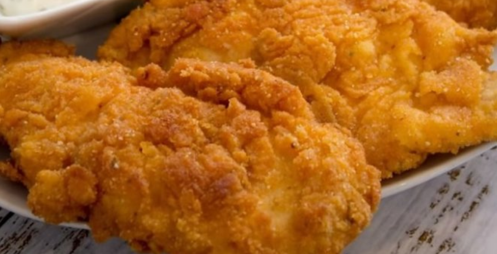 Измијте го пилешкото, исушете го, па исечете го на парчиња. Грубо исечкајте ги корнфлексите, па префрлете ги во соодветен сад. Во вториот сад измешајте пченкарно брашно, куркума, кари мешавина од зачини, мелена лута пиперка, сол и бибер, а во третиот изматете ги јајцата. Месото валкајте го прво во мешавина од брашно и зачини, па во изматени јајца и на крај во крупно исечкани корнфлекс, па пржете на врело масло додека месото добие убава боја од сите страни.