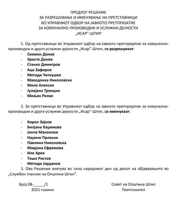 Но Методи Јорданов, не е само кумашин на градоначалникот Јорданов, туку тој по смената на локалната власт, од 2021 година станува член на Управниот одбор на ЈП Исар од Штип, пишува 24инфо.
