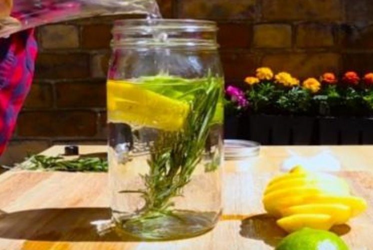 Се ставаат еднакви количини лимон и лимета во теглите, со вода, па потоа рузмарин, но не се меша. Се става и маслото.