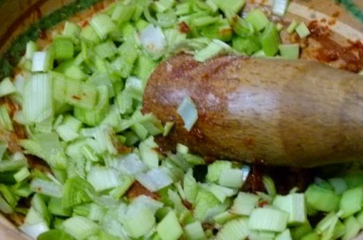 Празот ситно го сечкаме, го посолуваме и го толчиме.
