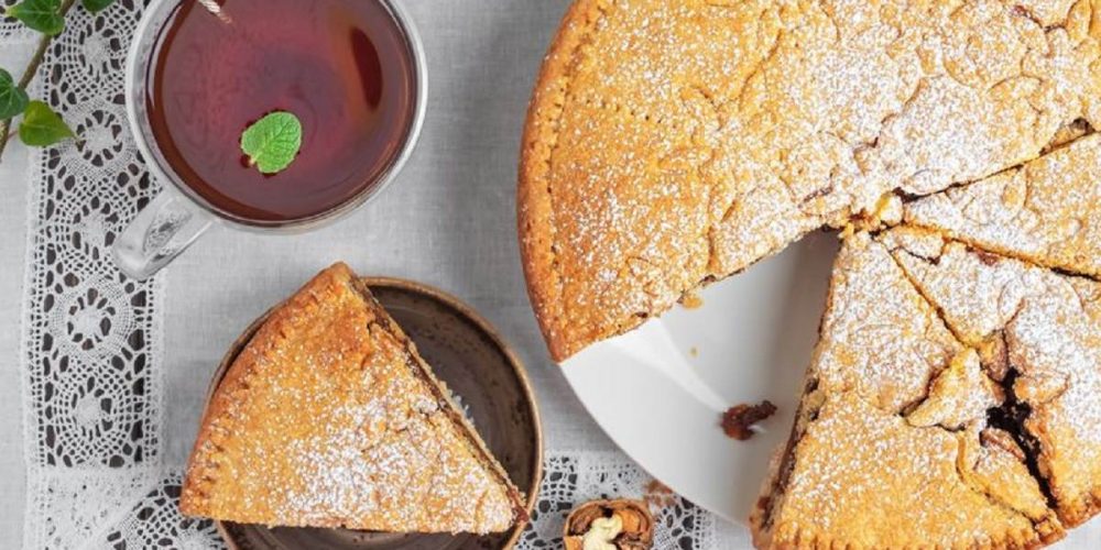 Потоа преклопете со горната кора, а пред послужување на колачот, по желба, посипете го со шеќер во прав.