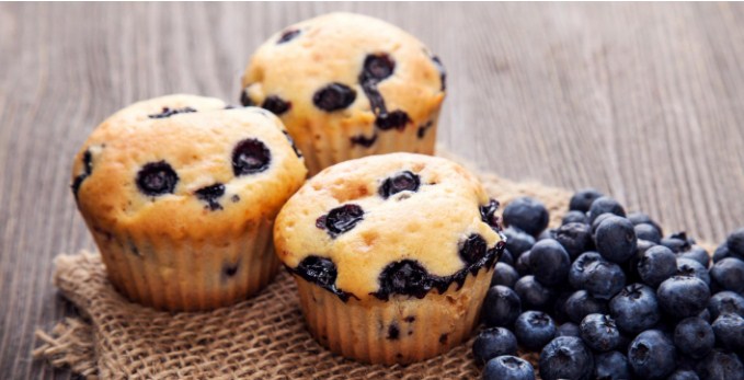 Мешајте за убаво да се соединат состојките, на крајот додадете ги боровинките и измешајте со лажица. Калапите наполнете ги со тестото, но не ги преполнувајте. Печете 25 минути, откако ќе се оладат посипете ги со шеќер во прав.