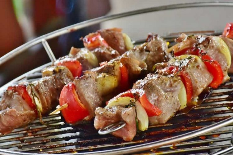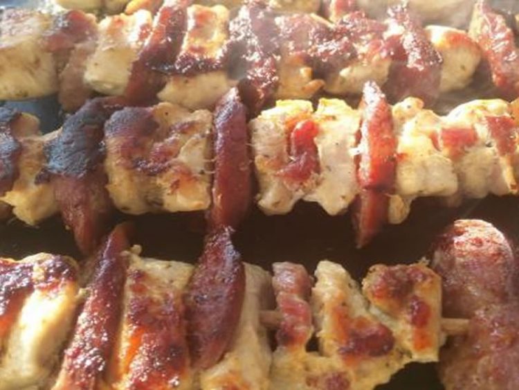 На мали стапчиња за ражничи ставаме по 3 парчиња.
