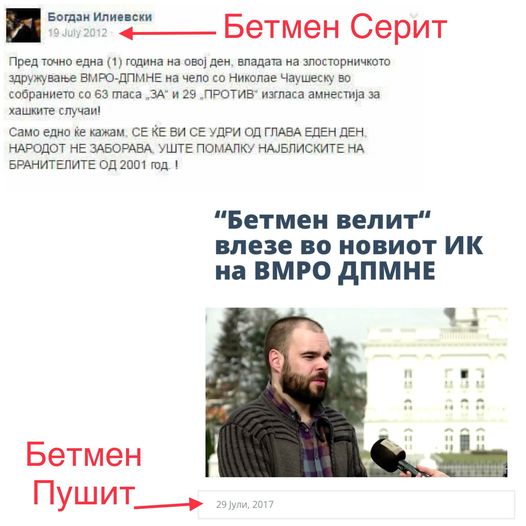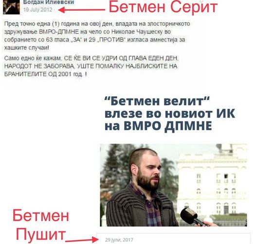 Веќе неколку денови на социјалните мрежи е актуелна “пресметката” меѓу лидерот на Левица, Димитар Апасиев и поранешниот член на ИК на ВМРО-ДПМНЕ, Богдан Илиевски – Бетмен.