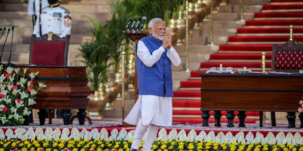 Хинду-националистичката партија на Моди владееше целосно во изминатата деценија, но овојпат не успеа да ги повтори претходните две убедливи победи. Наместо тоа, Моди беше принуден да преговара со Националната демократска алијанса (НДА), 15-члена коалиција, за да го собере потребниот број пратеници за владеење.