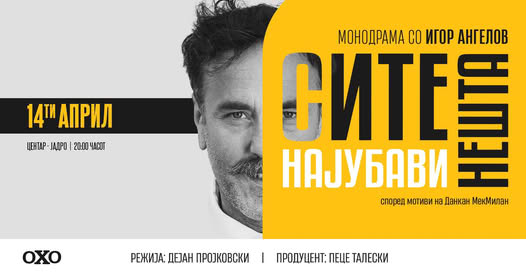 СИТЕ НАЈУБАВИ НЕШТА е монодрама инспирирана од делото на Данкан МекМилан, режирана од Дејан Пројковски и продуцирана од ОХО. Актерското мајсторство на Игор Ангелов оживува оваа приказна на сцената. Монодрамата, оригинално насловена „Every Brilliant Thing“ од Данкан МекМилан, отвора прашања за предизвиците на децата кои растат со родители кои се соочуваат со животни тешкотии и ни покажува колку сме важни за луѓето што ги сакаме. Врз основа на комбинација од реални и измислени настани, оваа драма ни открива како можеме да најдеме надеж во секојдневието, фокусирајќи се на најмали, но скапоцени нешта.