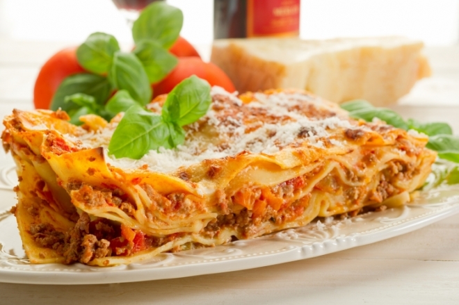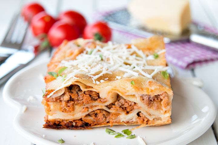 Наредете ред равиоли, сос од домати и парчиња сирење. Потоа повторете го процесот.