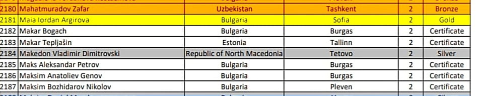 Македон освои сребрен медал на натпреварувањето во конкуренција од 4.142 учесници од 24 земји
