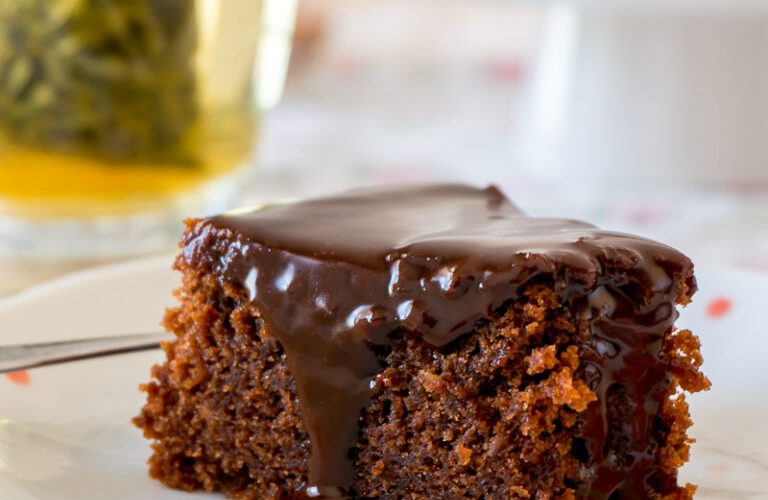 Изматете сè и печете во набрашнета тава околу 30 до 40 минути. Топлата торта премачкајте ја со џем и прелијте ја со растопената чоколада на која сте додале масло.