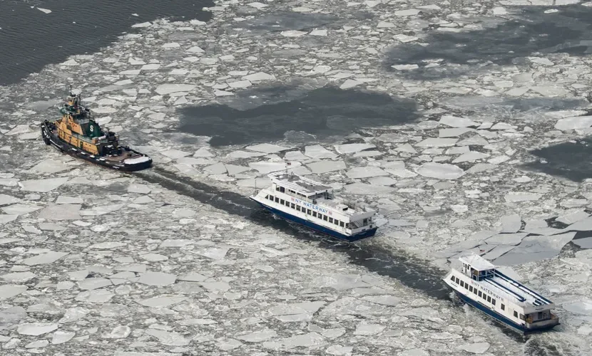 Нереални сцени пристигнуваат од Њујорк каде што ледените плочи пловат по реката Хадсон. Делумно замрзнати делови од реката беа забележани по силната зимска снежна бура во вторник, 27 јануари, додека екстремно ниските температури го зафатија регионот.