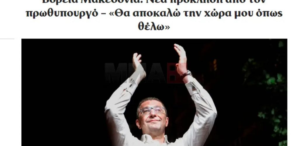 Денешната изјава на лидерот на ВМРО-ДПМНЕ Христијан Мицкоски предизвика реакции во грчките медиуми, кои коментираат дека станува збор за „нова провокација од Северна Македонија“, дека идниот премиер „ја следи линијата на претседателката Сиљановска“, а веста вечерва е една од главните теми во онлајн изданијата на медиумите, јави дописничката на МИА од Атина.