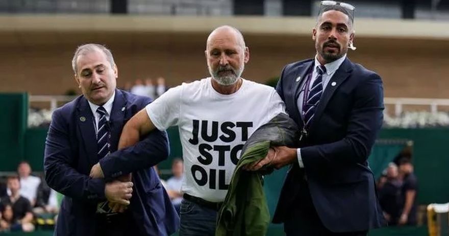 На теренот број 18 играа Григор Димитров и Шо Шимабукуро, влетаа двајца навивачи кои го прекинаа мечот уште пред да започне дождот. Двајцата втрчаа на теренот и почнаа да фрлаат конфети, а потоа скандираа песни против владата и ги навредуваа големите нафтени компании.
