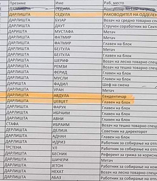 На списокот може да се забележат членовите на семејството Дарлишта, но и останати вработени во КХС.