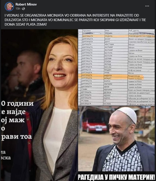 Мицињата веднаш се организираа во одбрана на паразитите на ДУИ, затоа што и мицињата во комуналец се паразити кои скопјани и издржуваат и тие седат дома и земаат плата, пишува на Фејсбук Роберт Минов кој објави и списоци од “паразитите”.