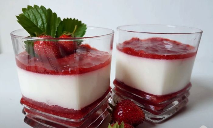 Освежителна овошна панакота (Пана Кота) направена од свежо овошје, совршена за топол летен ден.