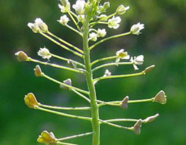 ОВЧАРСКА ТОРБИЧКА – Capsella Bursa-Pastoris (Русомача, „Ме сака – не ме сака, Бабини гниди, Моминска трева, Сангунариа). Овчарската торбичка е едногодишно или двегодишно растение, со исправено, слабо разгрането стебло високо до 50 см. Цвета од март до ноември.