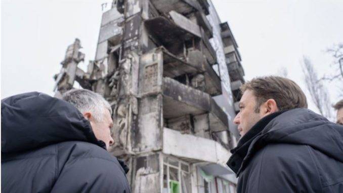 -Сите ние кои даваме поддршка на Украина сме на вистинската страна на историјата, на вистинската стран на хуманоста, на почитувањето на правото на живот, истакна Османи, за време на теренската посета, која се одвиваше меѓу урнатини, уништени стамбени згради и институции.